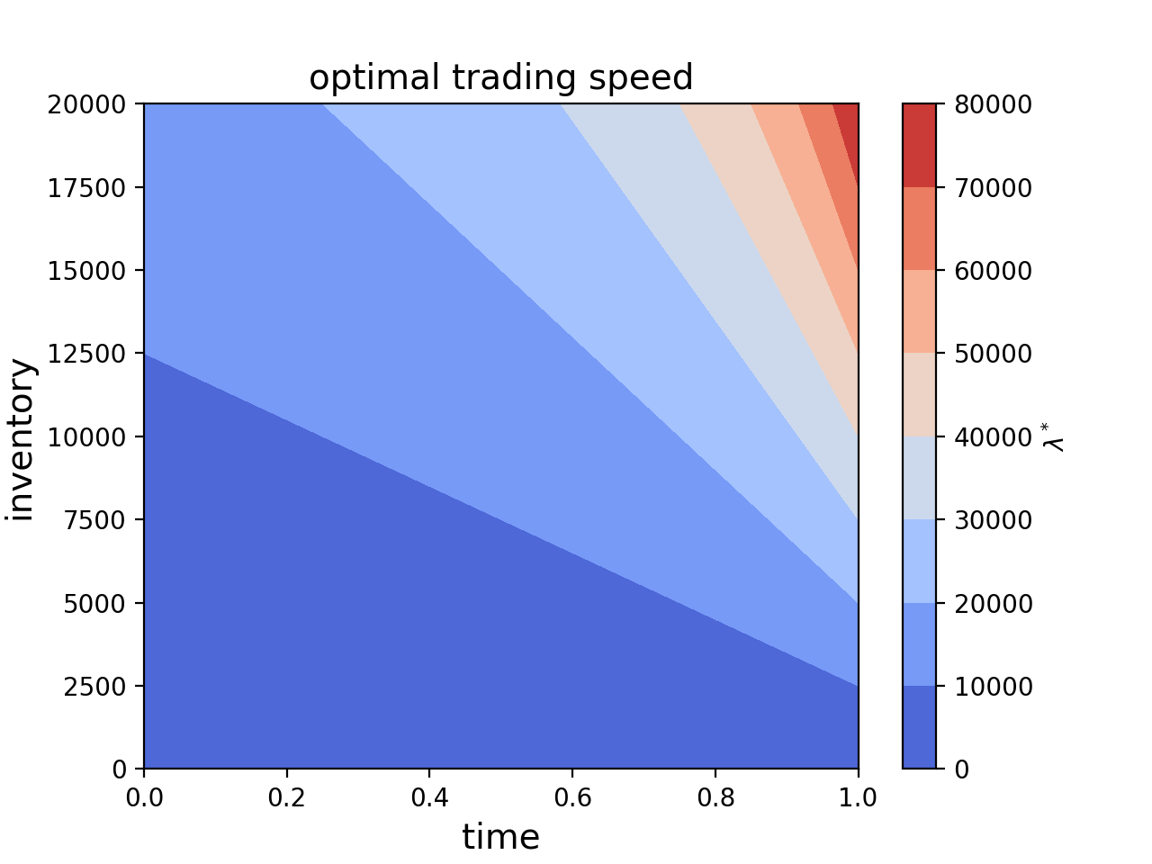 Once h(q,τ) is computed, the optimal speed of trading λ* = λ*(q,τ) can be inferred from (5):